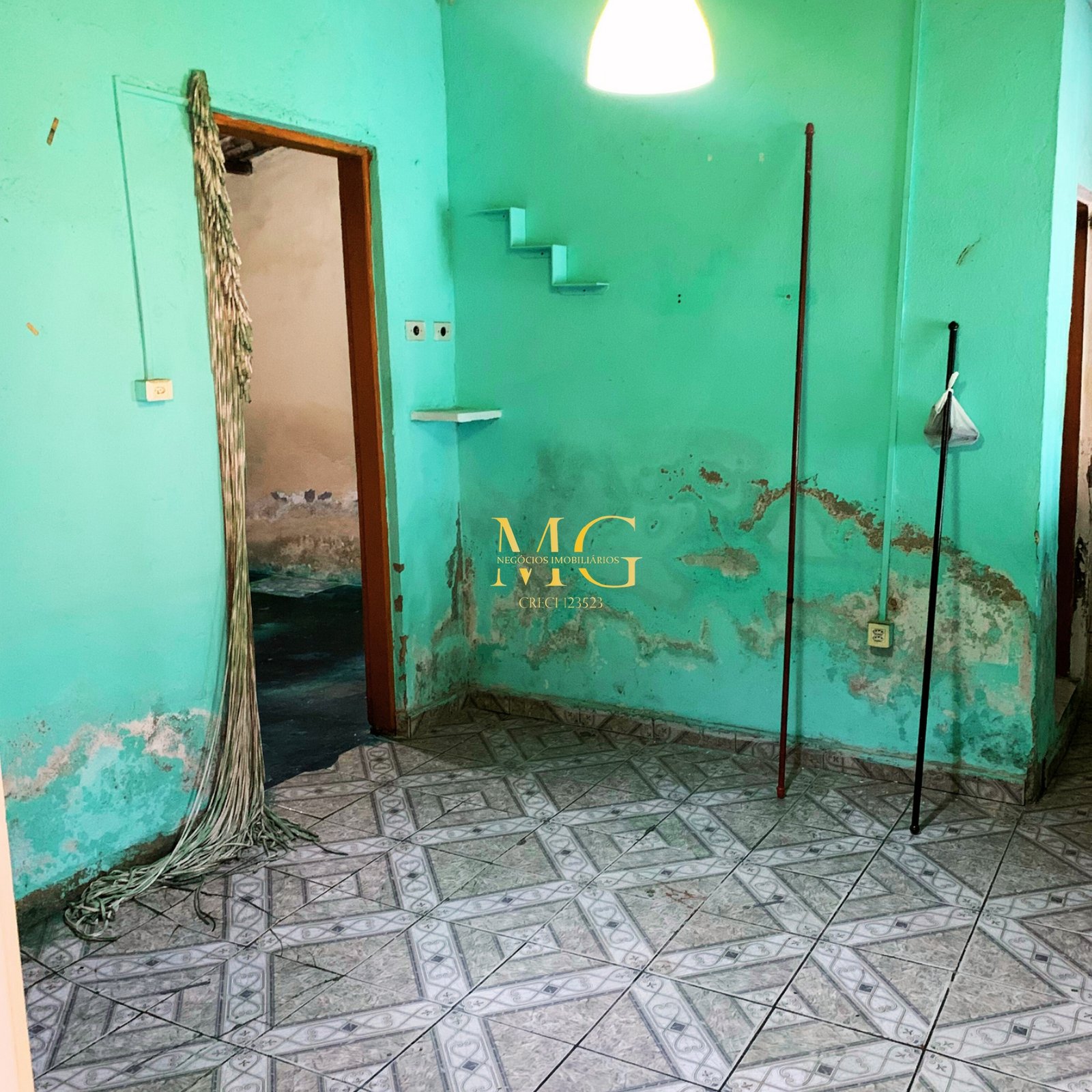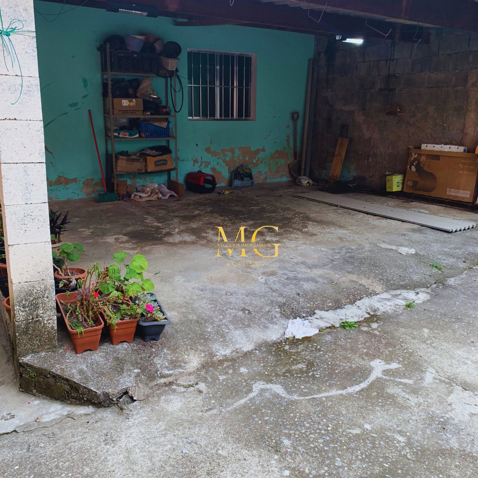 Casa com 2 quartos, cozinha, garagem grande, quintal, água e luz instalados, localizada em rua asfaltada e com documentação em dia.